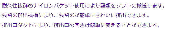| 備考 | 排出口ダクト / 残留米排出シャッター 付き | |||||||